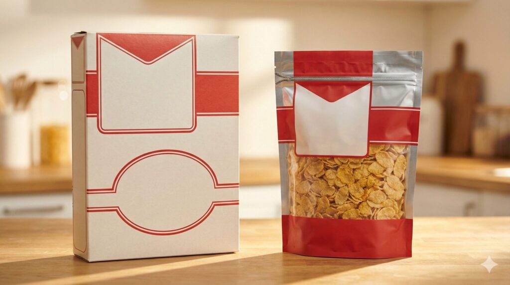 この変更は、消費者にとっては「開封後の湿気を防ぎたい」「ゴミを小さく捨てたい」という切実な悩みを解決する素晴らしい進化でした。しかし、副作用として「店頭で見つけにくい」という問題が発生したんですね。私たちはスーパーの棚を眺める際、無意識に「記憶にあるビジュアル」を探します。半世紀以上「ケロッグ=四角い大きな箱」というイメージが刷り込まれているため、脳が勝手に箱を探してしまい、目の前に袋タイプが並んでいても「いつものアレがない!」と認識されにくくなってしまうわけです。