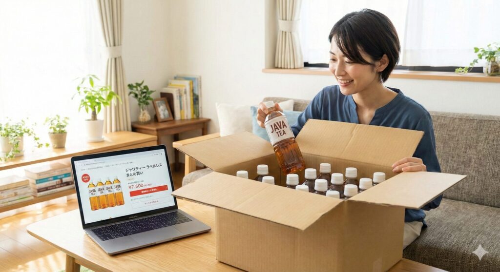 ジャワティーを最も確実、かつ最安値圏で手に入れる方法は、間違いなくAmazonや楽天市場などのオンライン通販を活用することです。店頭では1本160円前後しますが、通販で24本入りのケース買いをすれば、1本あたりの単価を大幅に抑えることができます。さらに、ファンなら絶対に見逃せないのが「ラベルレスボトル」の存在です。