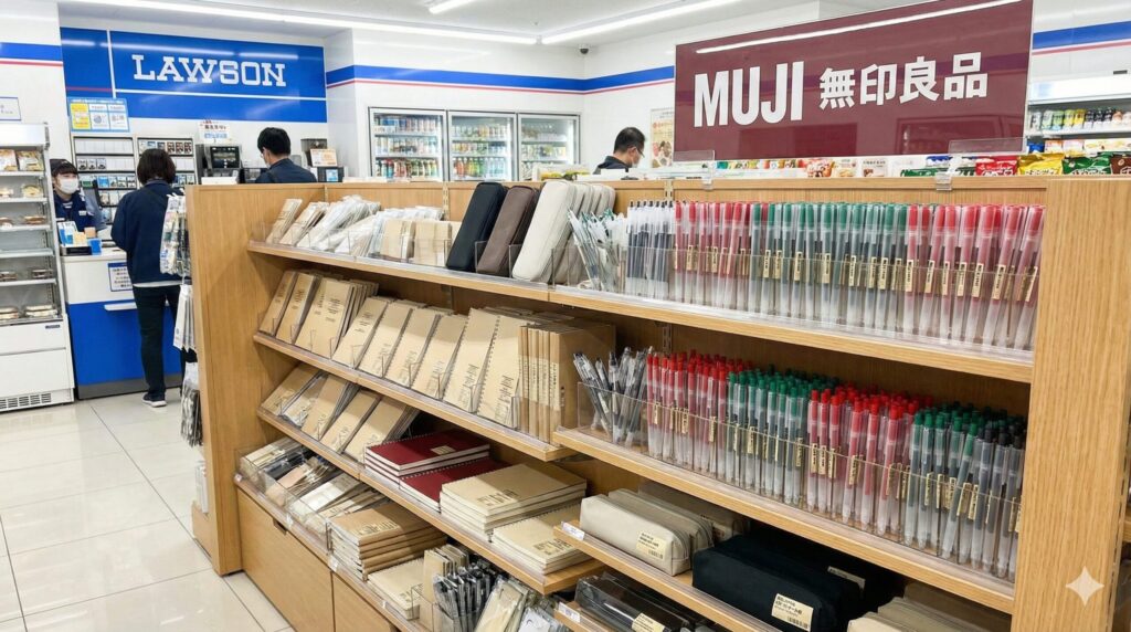 ローソンの文房具コーナーを覗いたことがある方ならお気づきかもしれませんが、最近のローソンは「無印良品」の導入を猛烈に進めています。かつては独自の文房具も置いていましたが、今や棚の主要な部分は無印良品のシンプルで機能的な文房具たちが占拠しています。この戦略により、ゼブラのチェックペンがローソンの棚に並ぶ余地は、以前よりもさらに少なくなってしまいました。