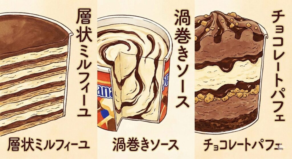 | サンデーカップ | カップ | ★★★☆☆ | 層状のチョコがアクセントで、パナップに近い構造 |